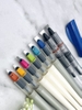 - Mỗi hộp bao gồm 1 cây bút, một mực màu đen, một mực màu đỏ, một ruột rửa bút (màu xanh) và 1 lau ngòi (màu đen) kèm bản hướng dẫn viết một số kiểu chữ