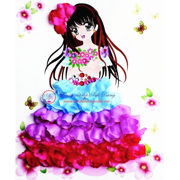 🍄 Hồ dán, hạt trang trí nhiều màu sắc và rất nhiều bông hoa vải để xếp váy - Hình mẫu đã dán và hướng dẫn các bước thực hiện