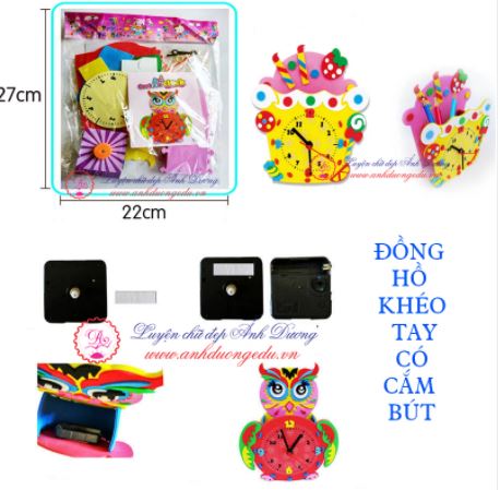 ⏰ ĐỒNG HỒ KHÉO TAY CÓ CẮM BÚT - Loại đồ chơi rèn luyện khả năng khéo léo và tỉ mỉ cho bé với những miếng ghép có sẵn được cắt thành các mảnh hình cố đinh, bộ máy đồng hồ và tờ hướng dẫn sử dụng giúp trẻ sẽ tự làm được món đồ chơi yêu thích của mình vừa có thể bày lên bàn học hoặc trang trí bất cứ đâu bé thích