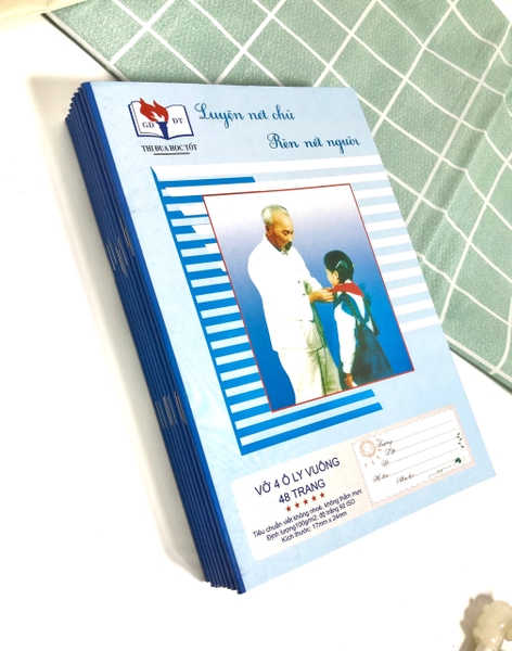 📚 Vở 4 ô ly vuông, bìa Bác Hồ màu xanh